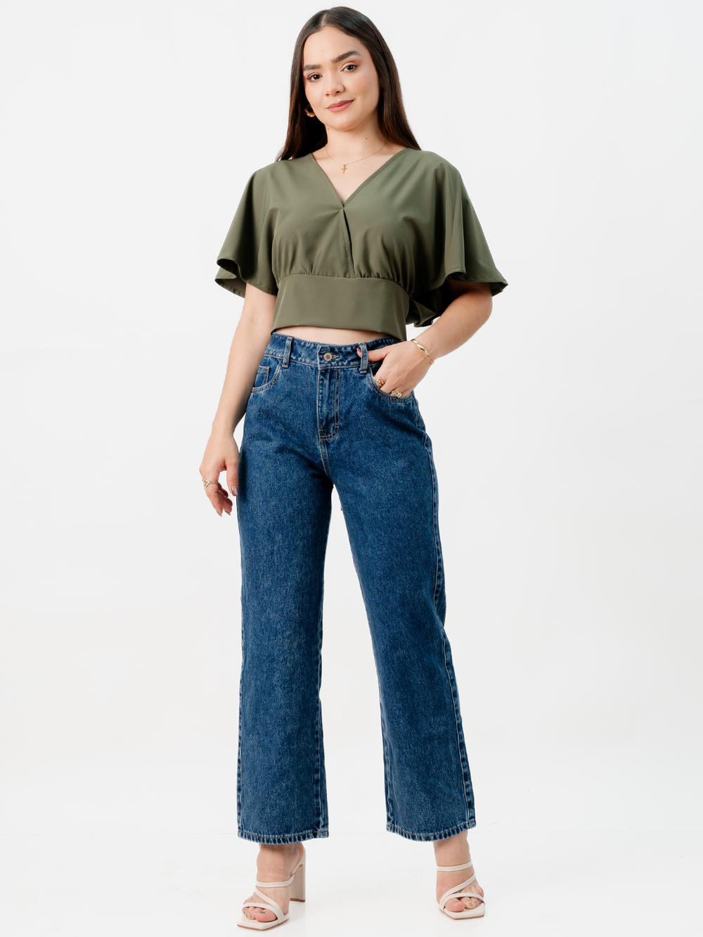 BLUSA CORTA CON MANGAS CON VUELO ROSIE VERDE