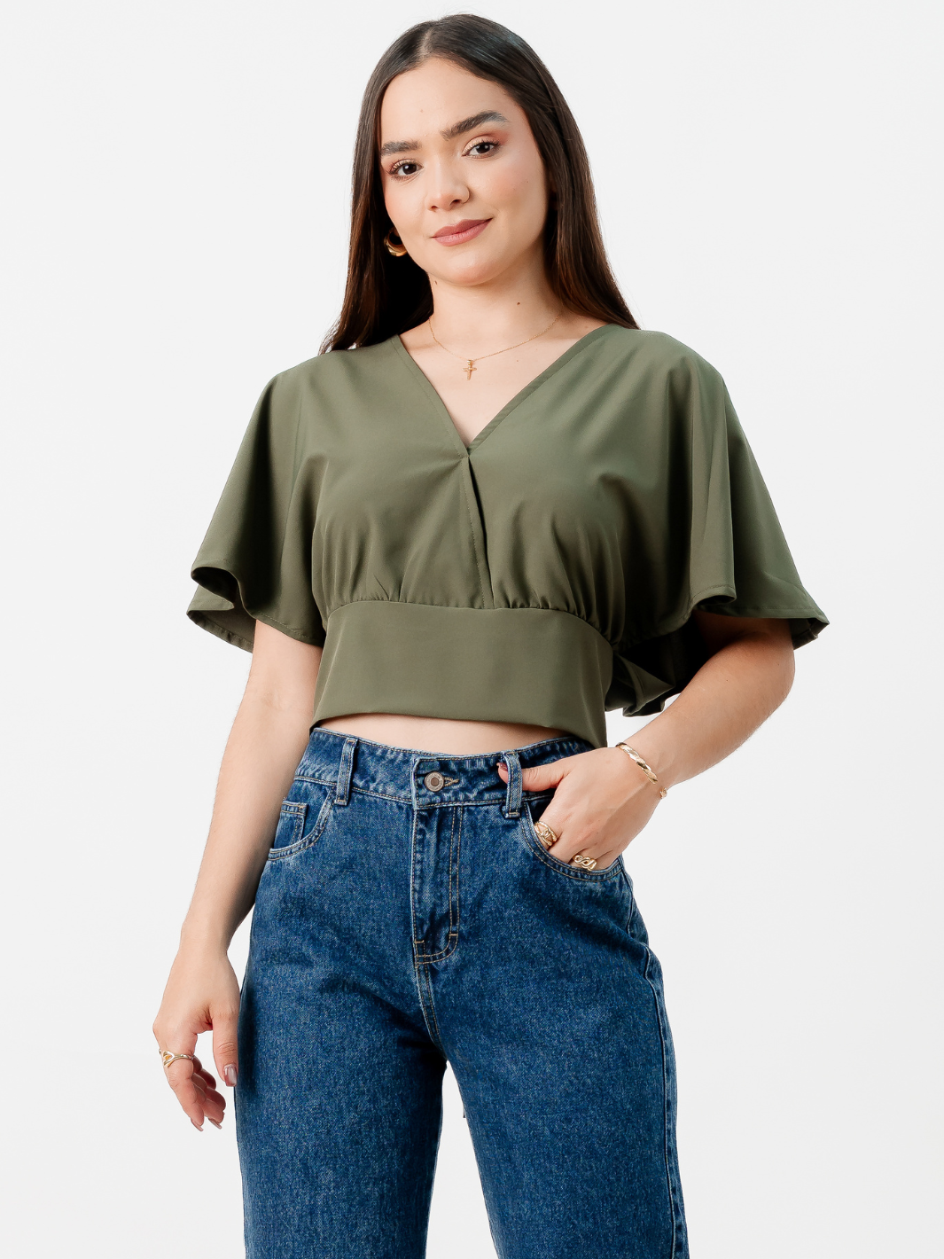 BLUSA CORTA CON MANGAS CON VUELO ROSIE VERDE