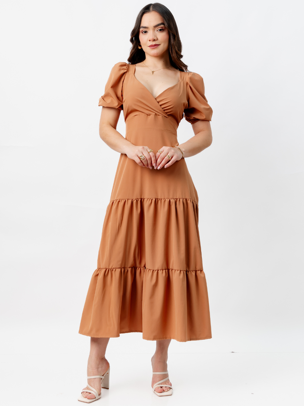 VESTIDO CASUAL LARGO CON LAZO TILZA CAMEL