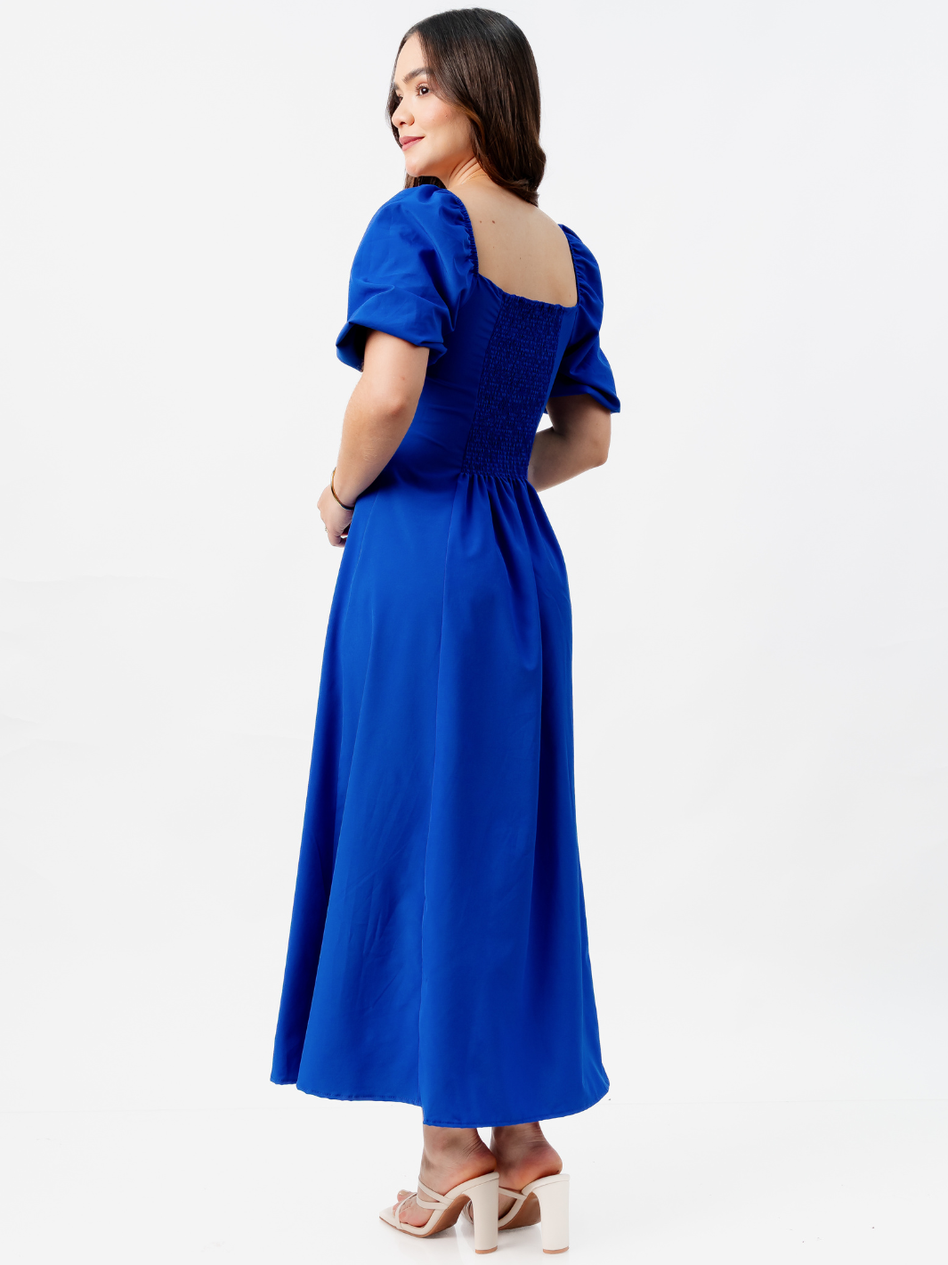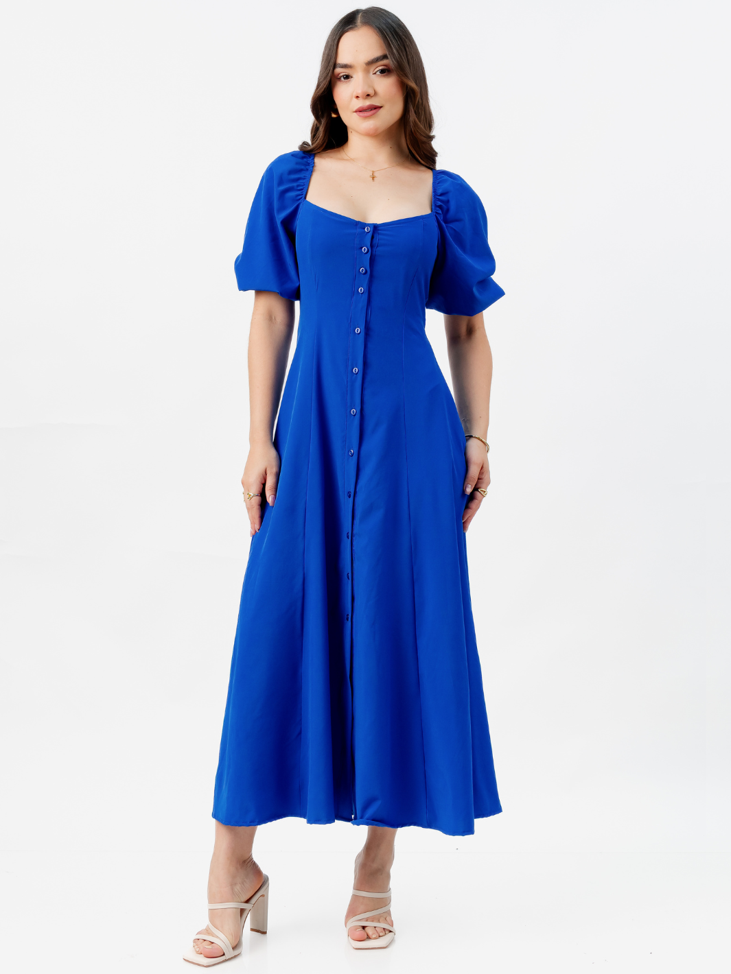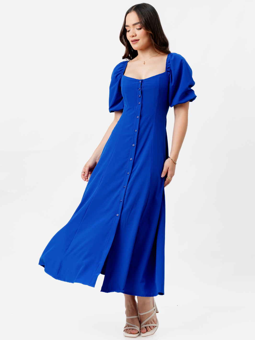 Descubre la elegancia única de nuestro Maxivestido de seda francesa para mujer, una prenda sofisticada y versátil ideal para ocasiones especiales o looks diarios con estilo. Su diseño incorpora 12 botones delanteros funcionales, que aportan un detalle refinado, mientras que las mangas abullonadas le dan un aire femenino y romántico. La espalda elasticada asegura un ajuste perfecto y cómodo que se adapta a tu silueta. Confeccionado en delicada seda francesa, este vestido destaca por su caída ligera, suavidad y acabado de alta calidad. Una pieza atemporal que realzará tu clóset con distinción y elegancia. *Recuerda que las medidas pueden variar +/-1.5cm