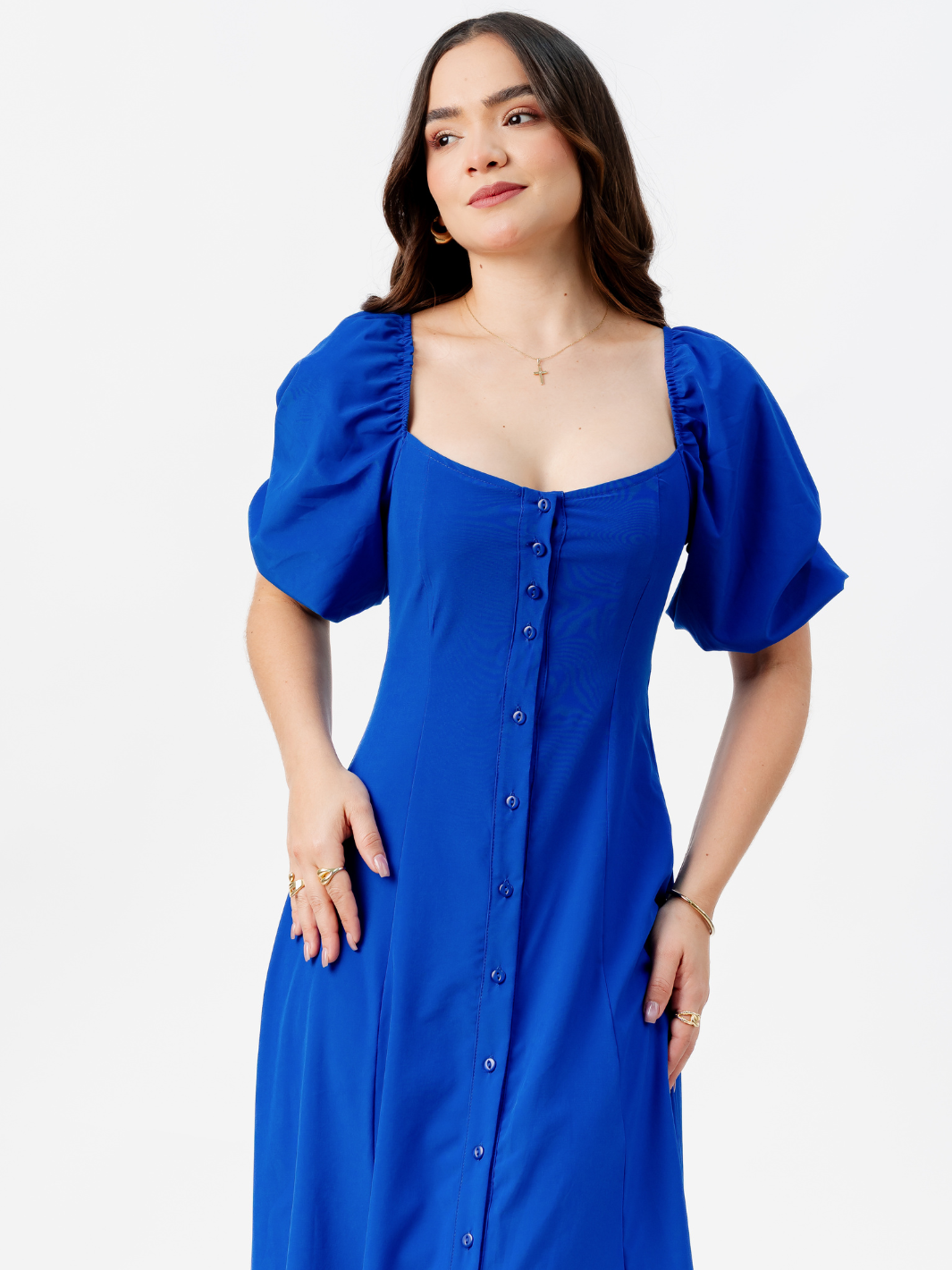 VESTIDO LARGO CON BOTONES MAGDALENA AZULINO