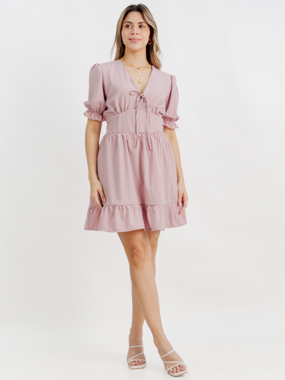 VESTIDO CORTO CON BOBO EN LA FALDA ARIEL PALO ROSA