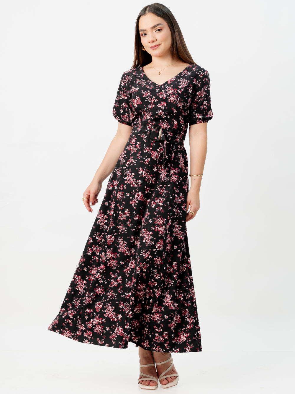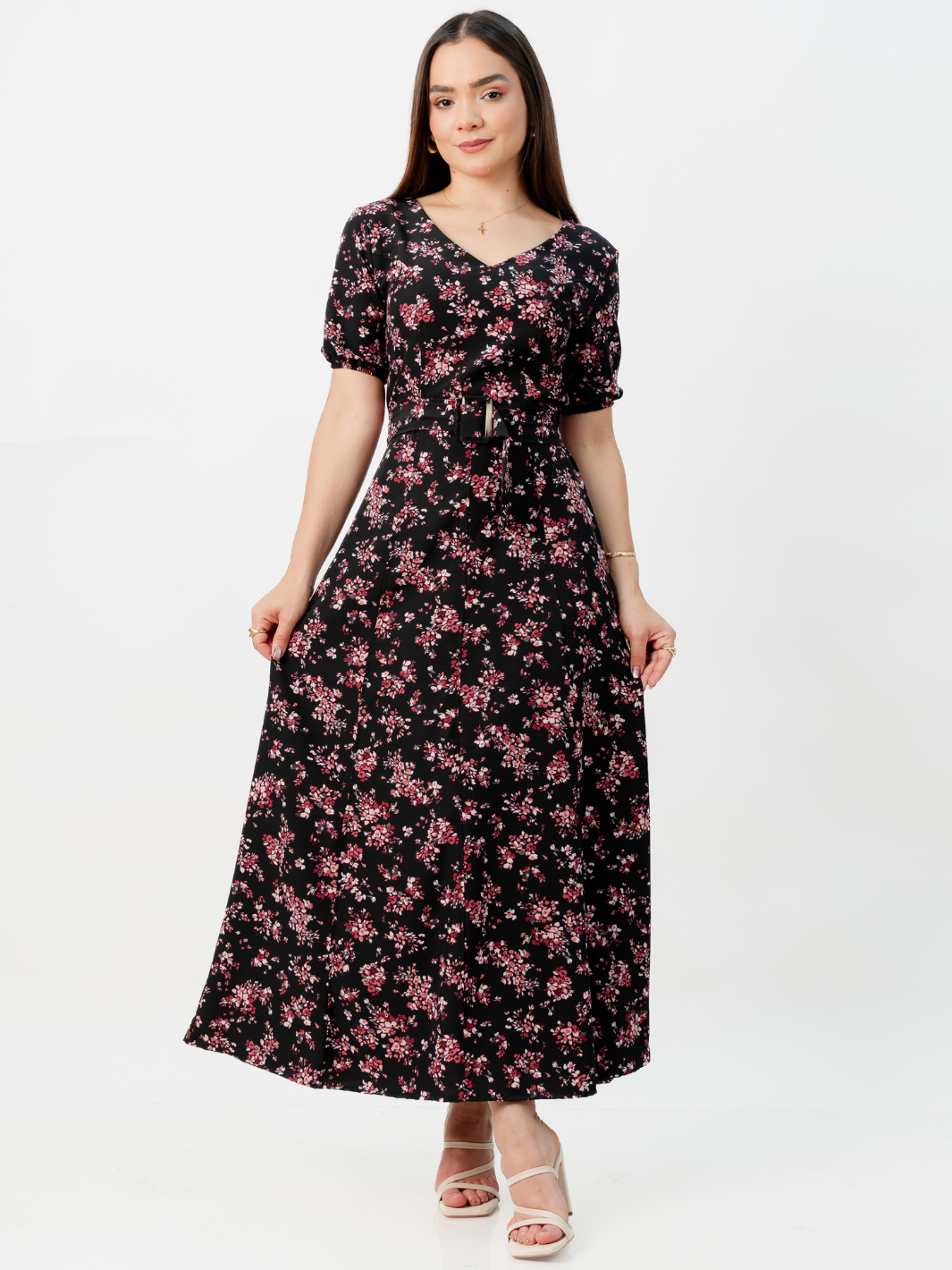 VESTIDO CASUAL LARGO EN CORTE A FERGIE NEGRO