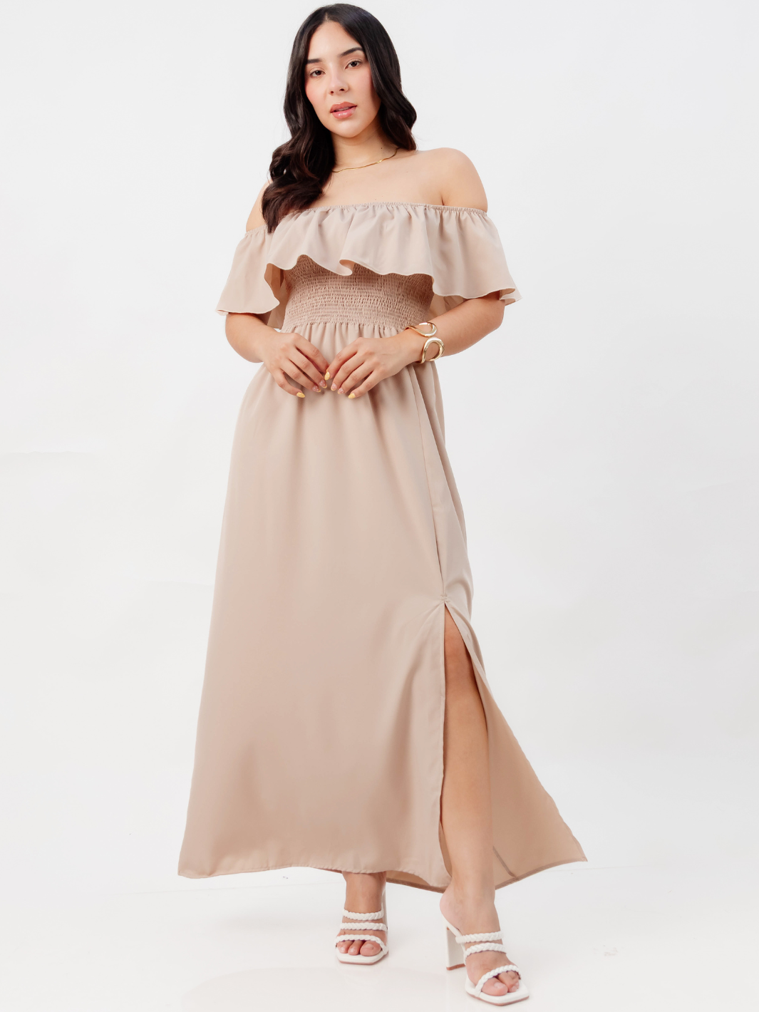 VESTIDO RUMBERO CASUAL LARGO MINERVA NUDE