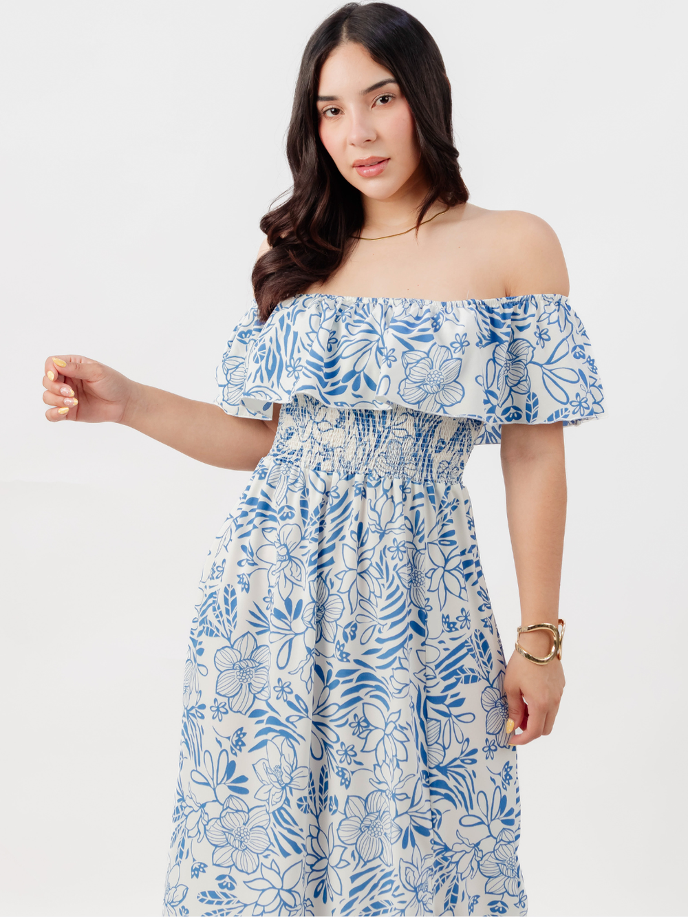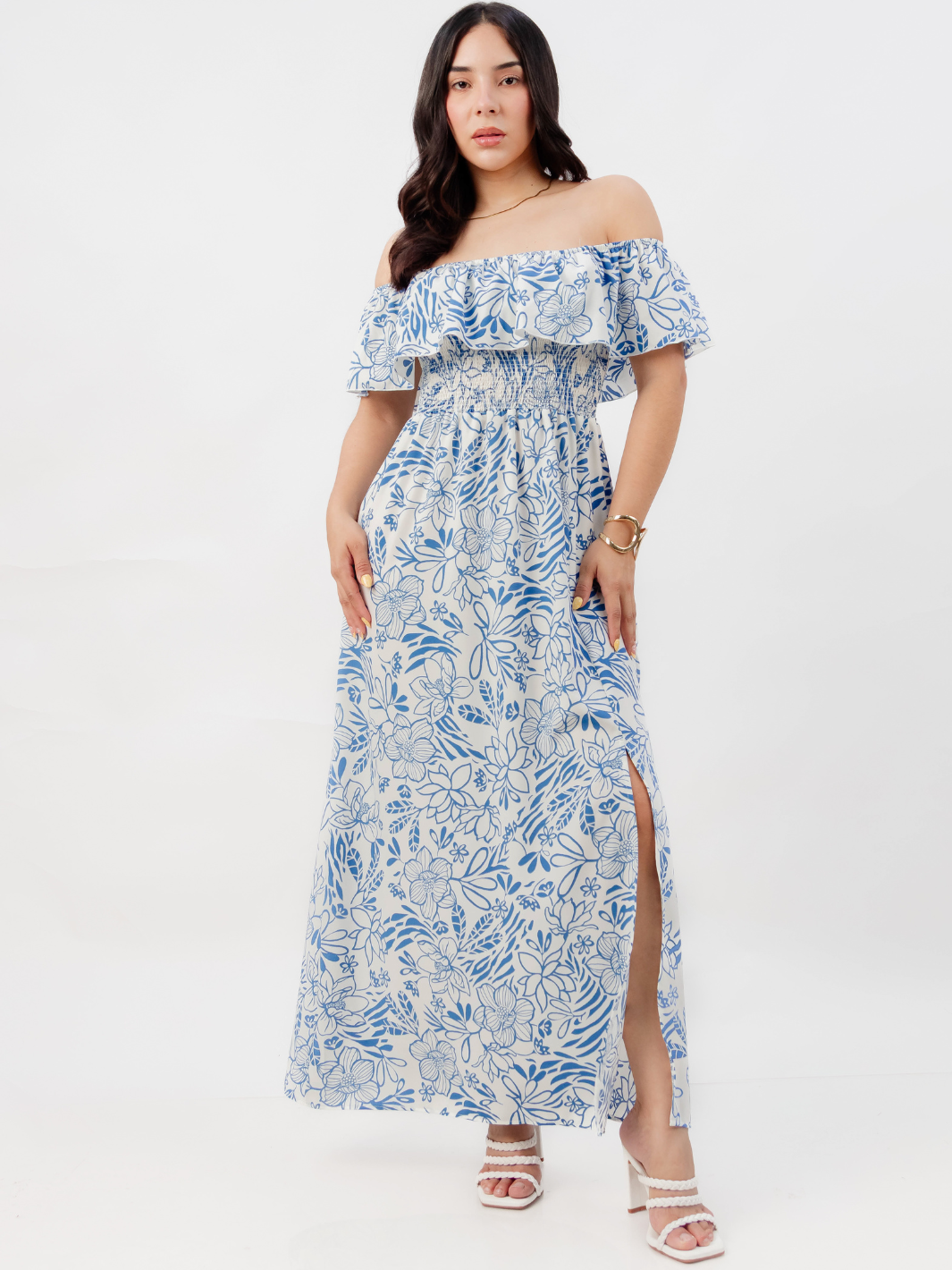 VESTIDO CASUAL LARGO REBECA RUST FLOREADO