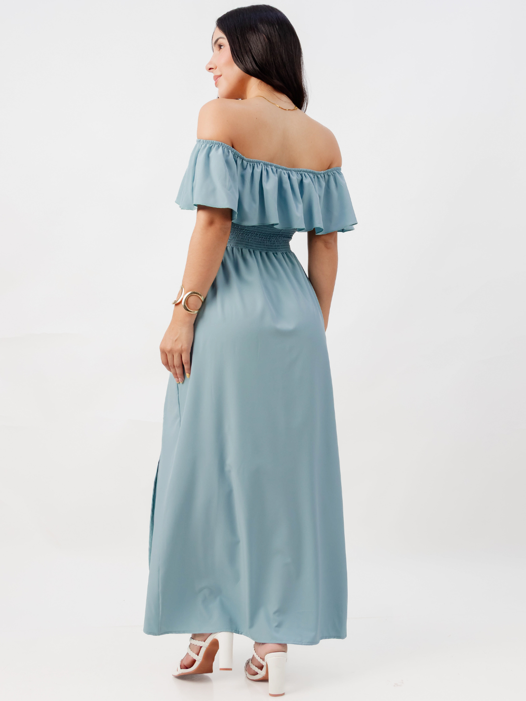 Maxi vestido estilo rumbero confeccionado en seda francesa, diseñado para destacar tu feminidad con un aire elegante y sensual. Sus mangas descubiertas realzan los hombros de forma delicada, mientras que el pecho y la espalda con multiaguja brindan un ajuste cómodo y favorecedor que se adapta a tu silueta. La falda con abertura lateral izquierda aporta movimiento y frescura, ideal para ocasiones especiales, eventos o looks sofisticados con un toque moderno. *Recuerda que las medidas pueden variar +/-1.5cm