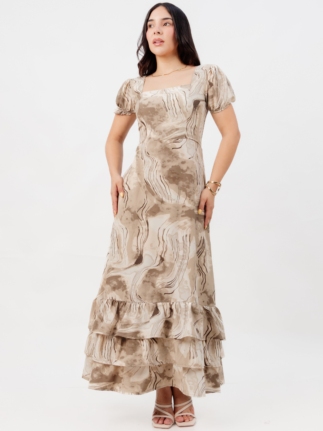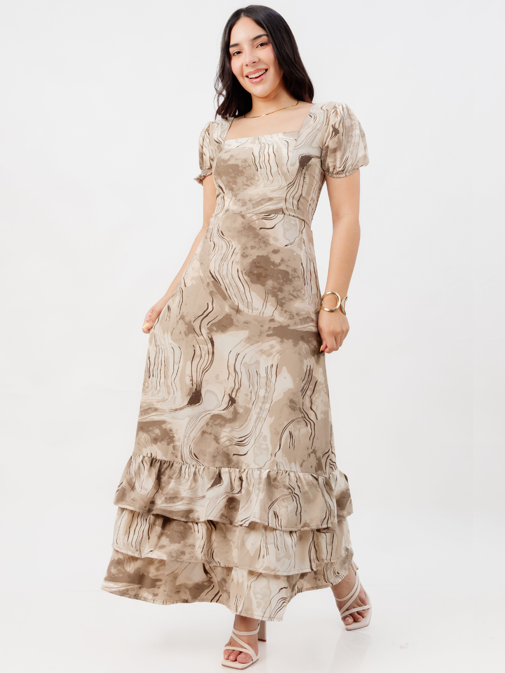 VESTIDO CASUAL LARGO REBECA RUST FLOREADO