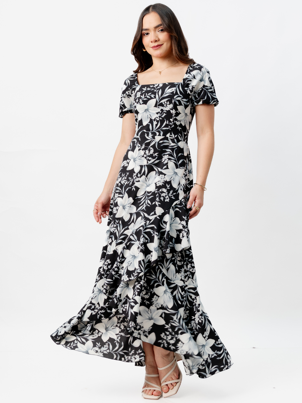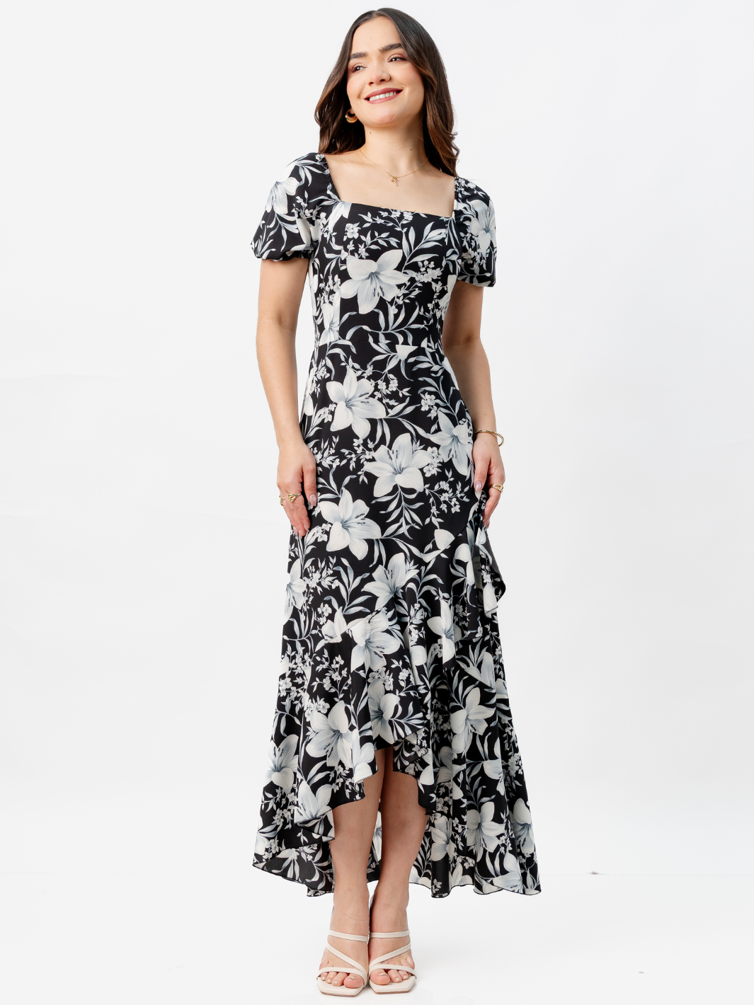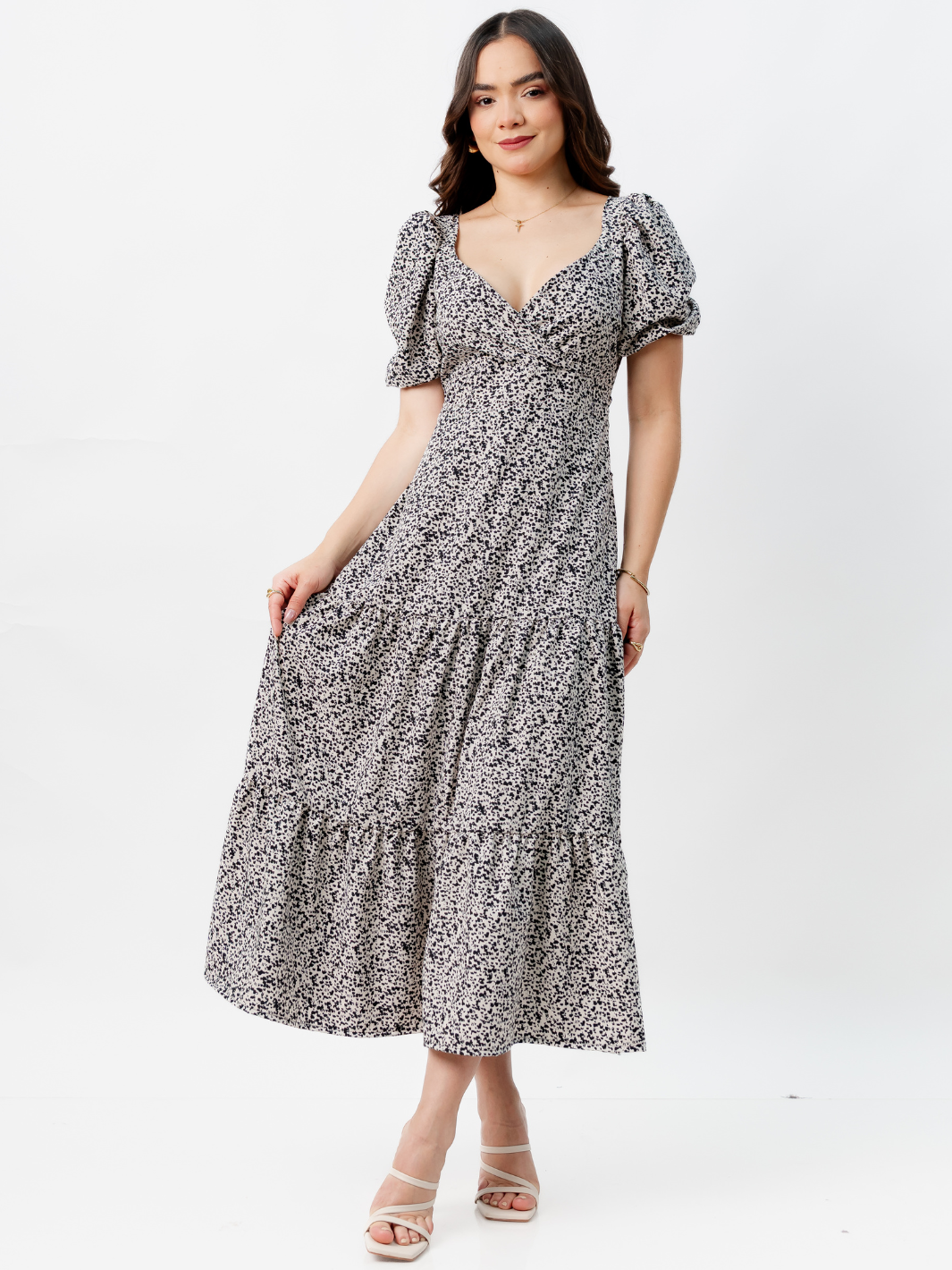 VESTIDO ENVOLVENTE MICAELA NEGRO FLOREADO
