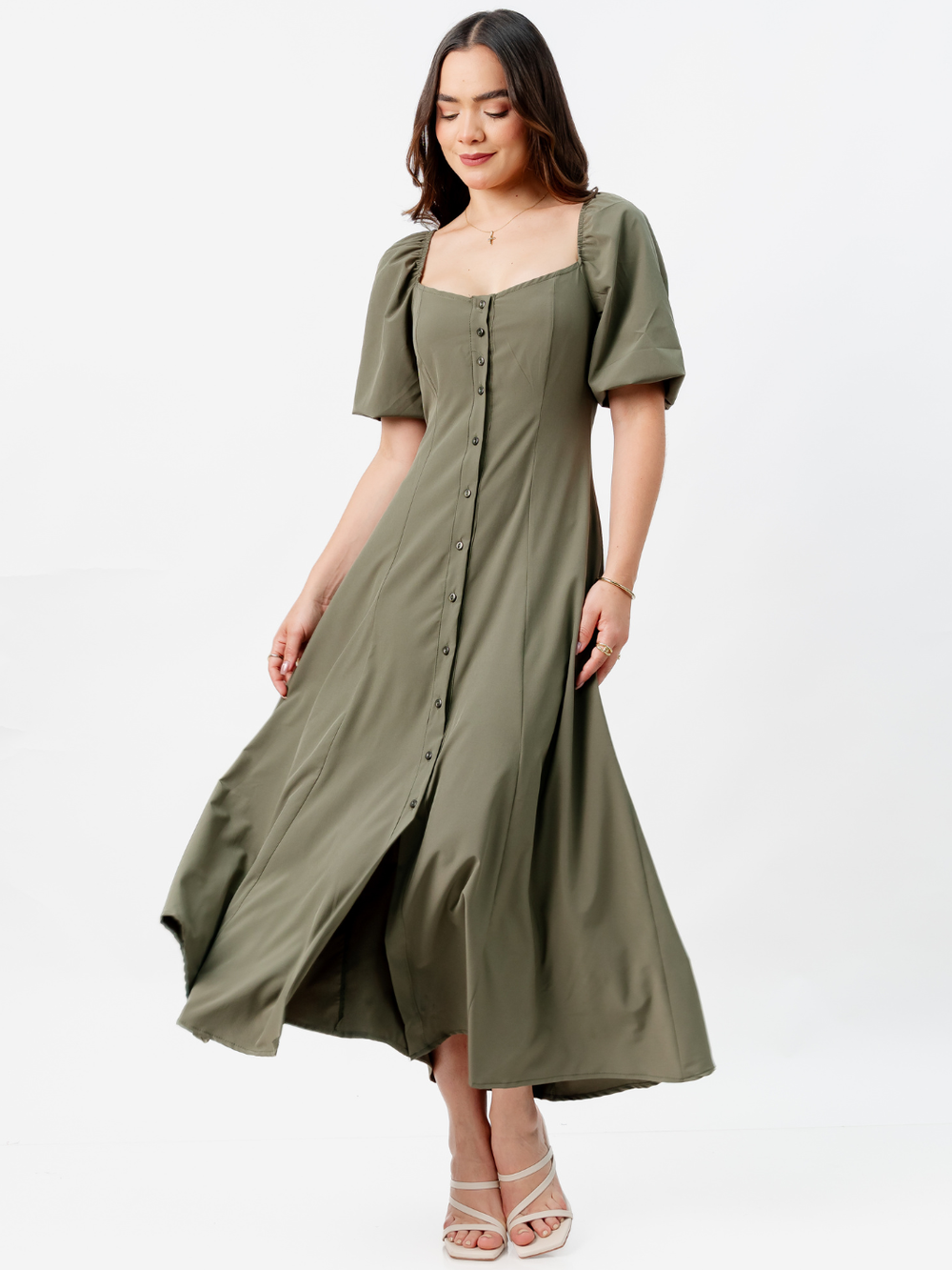 VESTIDO LARGO CON BOTONES MAGDALENA VERDE