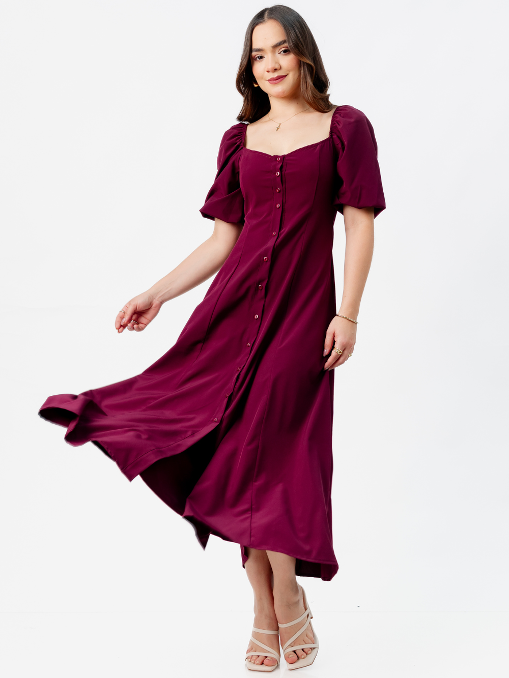VESTIDO LARGO CON BOTONES MAGDALENA BORGOÑA