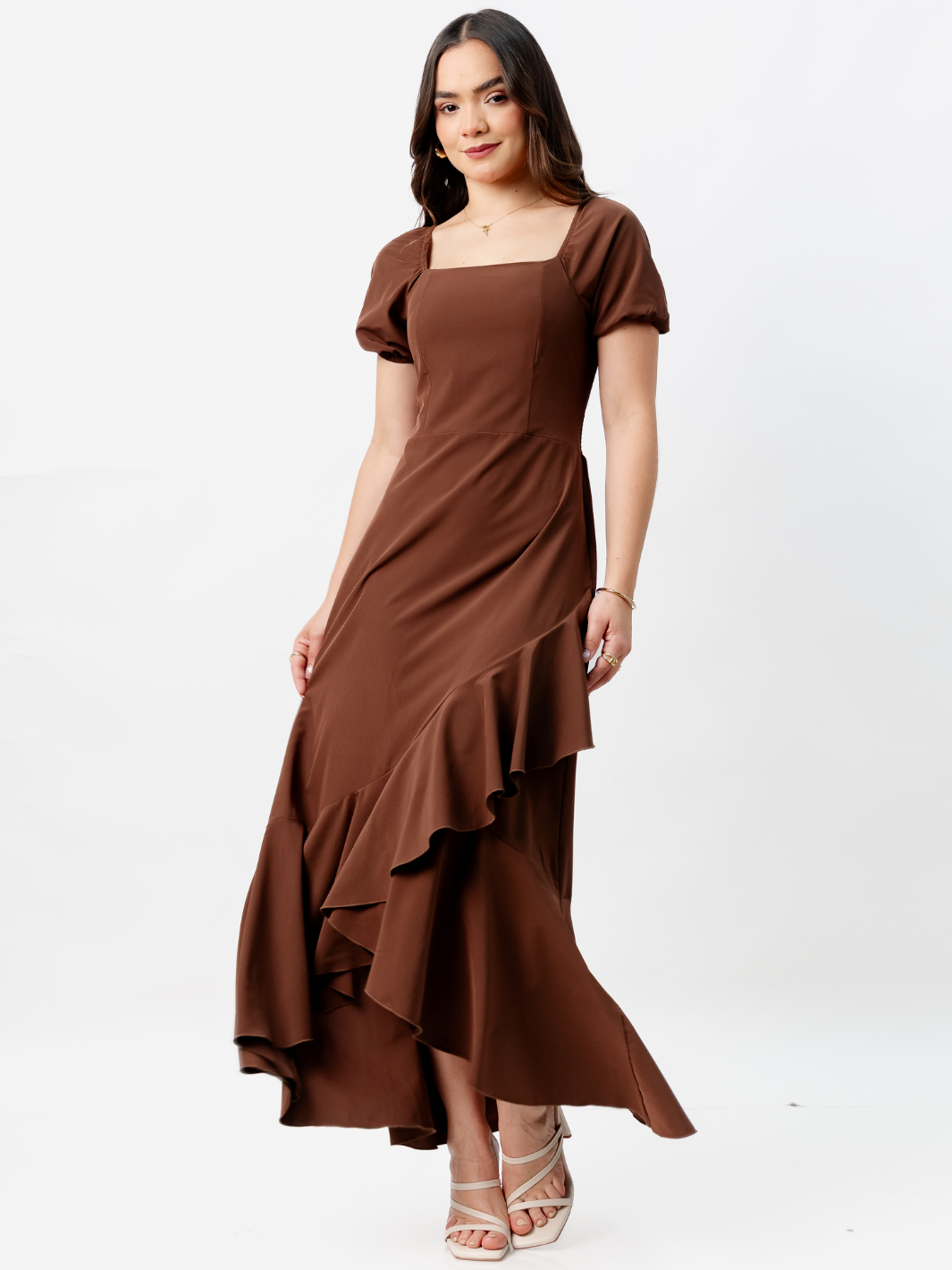 VESTIDO CASUAL LARGO PAOLA CHOCOLATE