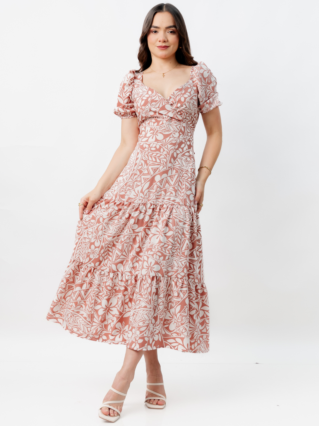 VESTIDO CASUAL LARGO CON LAZO TILZA TERRACOTA/PERLA