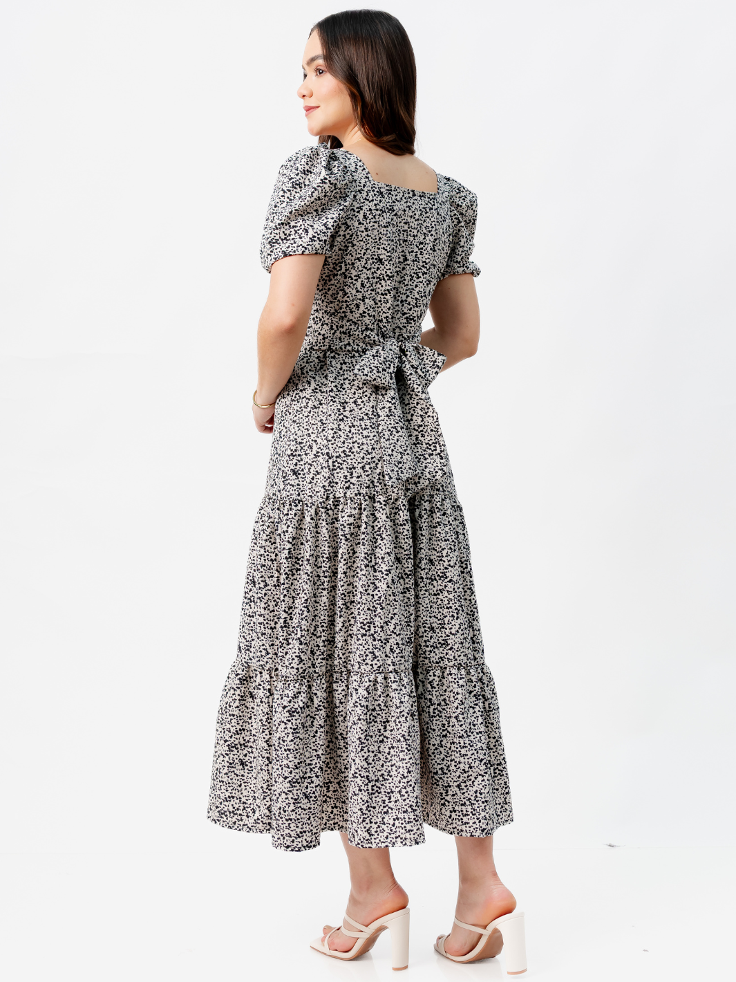 VESTIDO CASUAL LARGO CON LAZO TILZA PERLA/NEGRO