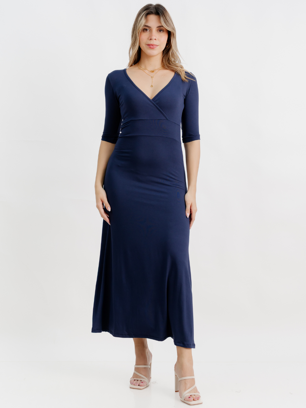 Disfruta de la suavidad y frescura de nuestro maxivestido de viscosa algodón nacional, diseñado para ofrecerte comodidad sin perder elegancia. Su corte favorecedor en la cintura realza tu figura de manera natural, mientras que las mangas 3/4 y el cruce delicado en el busto aportan un toque femenino y encantador.