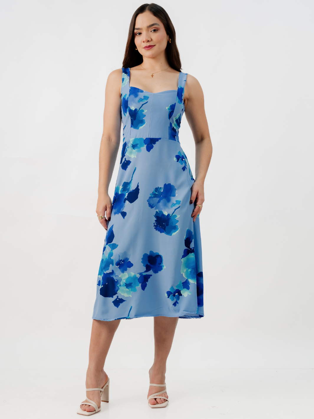 VESTIDO MIDI EN CORTE A SALLY AZUL FLOREADO