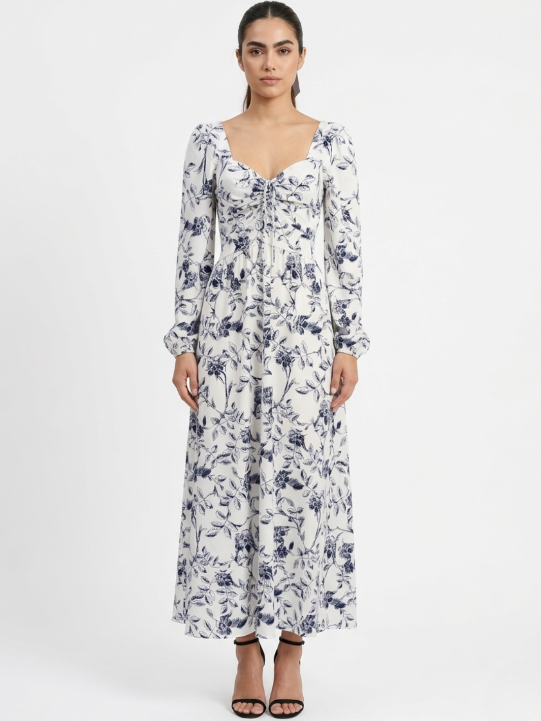 Maxivestido elegante confeccionado en seda francesa, con un delicado pasador en el centro del busto que permite regular el escote según tu estilo; cuenta con espalda con multiagujas que se adapta cómodamente a tu silueta y mangas largas sueltas que brindan ligereza y movimiento, convirtiéndolo en una prenda femenina, versátil y perfecta tanto para ocasiones especiales como para looks sofisticados del día a día. *Recuerda que las medidas pueden variar +/-1.5cm